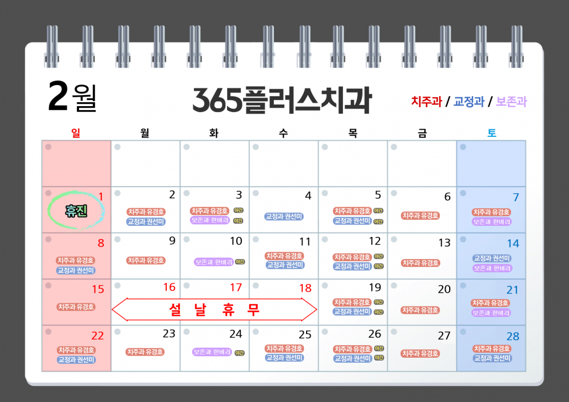 과별 원장님 2월 진료일정
